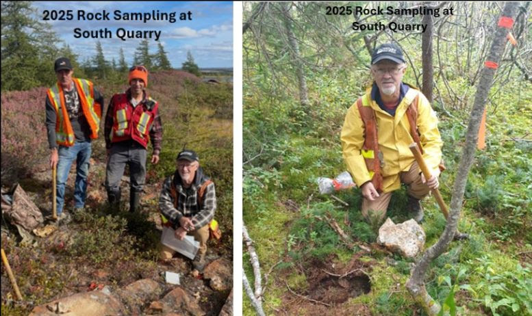 Great Atlantic recently completed a program of prospecting and rock geochemical sampling at its 100% owned South Quarry Tungsten Property. The primary focus of the work was continued exploration for tungsten mineralization in various target areas. Work in previous years by the Company has confirmed tungsten mineralization in bedrock and glacial float within the property including high grade tungsten in two quarries in the northern region of the property (see Company news releases). A secondary focus of the 2025 program was exploration for gold and emeralds. Great Atlantic had previously confirmed green beryl crystals at a location in the northern region of the property and is continuing to evaluate emerald potential within the property. Close to 50 rock samples have been collected from various regions which will submitted to an independent, certified laboratory for analysis (gold, tungsten, beryllium and other pathfinder elements).