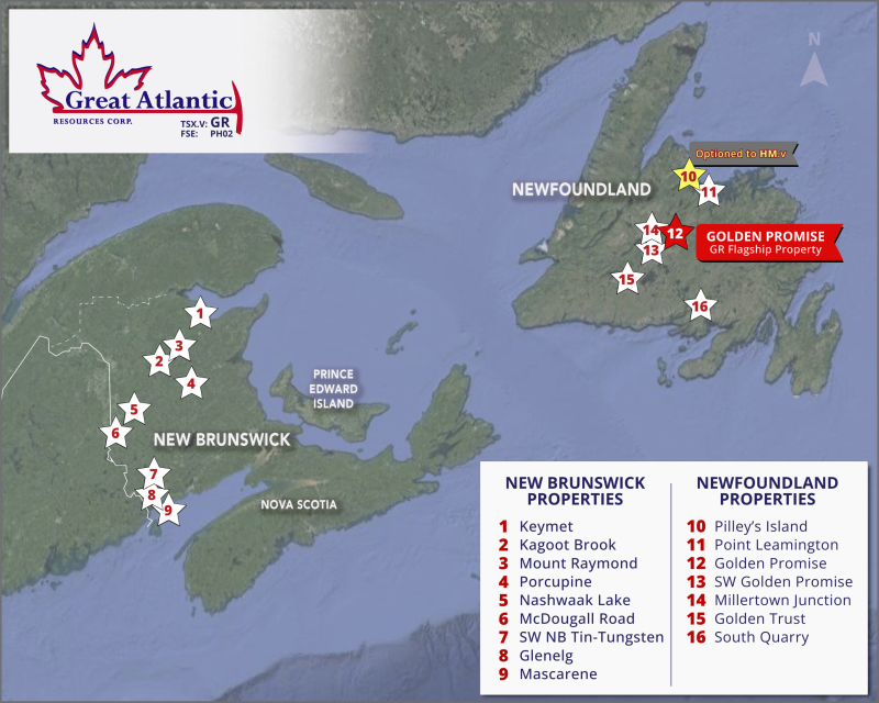 About Great Atlantic Resources Corp.: Great Atlantic Resources Corp. is a Canadian exploration company focused on the discovery and development of mineral assets in the resource-rich and sovereign risk-free realm of Atlantic Canada, one of the number one mining regions of the world. Great Atlantic is currently surging forward building the company utilizing a Project Generation model, with a special focus on the most critical elements on the planet that are prominent in Atlantic Canada, Gold, Copper, Zinc, Nickel, Cobalt, Antimony and Tungsten.