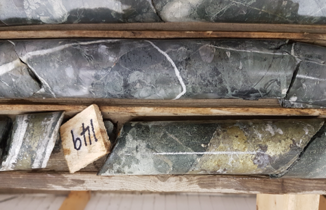 The core sampling will include intervals with arsenopyrite mineralization for gold analysis and intervals with base metal sulfide mineralization for base metal and silver analysis. The Elmtree 12 vein system includes local high-grade veins, including a 2018 drill intercept (hole Ky-18-14) of 1,158 grams / tonne (g/t) silver, 9.04% zinc and 9.19% copper over 3.00 meters core length.
