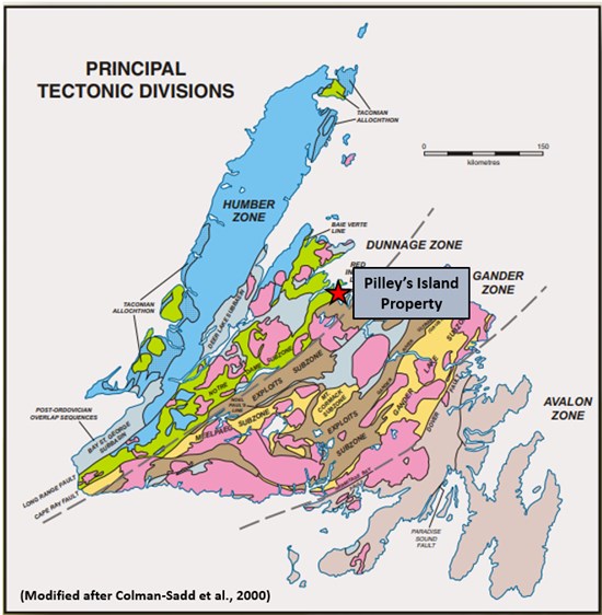 Mining and exploration at the Pilley’s Island Project date back to the late 1800’s when the Pilley’s Island Pyrite Company Ltd. produced approximately 450,000 tonnes of massive pyritic ore from the Pilley’s Island Mine – Old Mines (after Kerr, 1996).