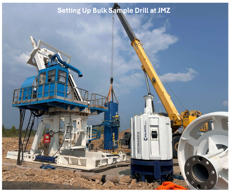 Three additional close-spaced diamond drill holes were completed during December 2024 and April 2025 in this area of the JMZ in preparation for the bulk sample program, the program managed by Novamera Inc. The three drill holes included the use of Novamera’s proprietary Guidance Tool, providing increased data and resource knowledge to define the shape, geometry and continuity of the vein(s). The Guidance Tool collects data within a 3-4 meters radius of the borehole to create a high-resolution 3D model, which is then used to calculate the optimal drill trajectory for Surgical MiningTM.